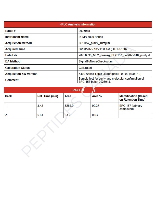 We take a laboratory-first approach to quality. Each batch is made under controlled conditions and verified by an independent lab (HPLC/MS). We only ship batches that test ≥99% purity, and we provide a full COA, including identity, methods, and chromatograms, for your review.