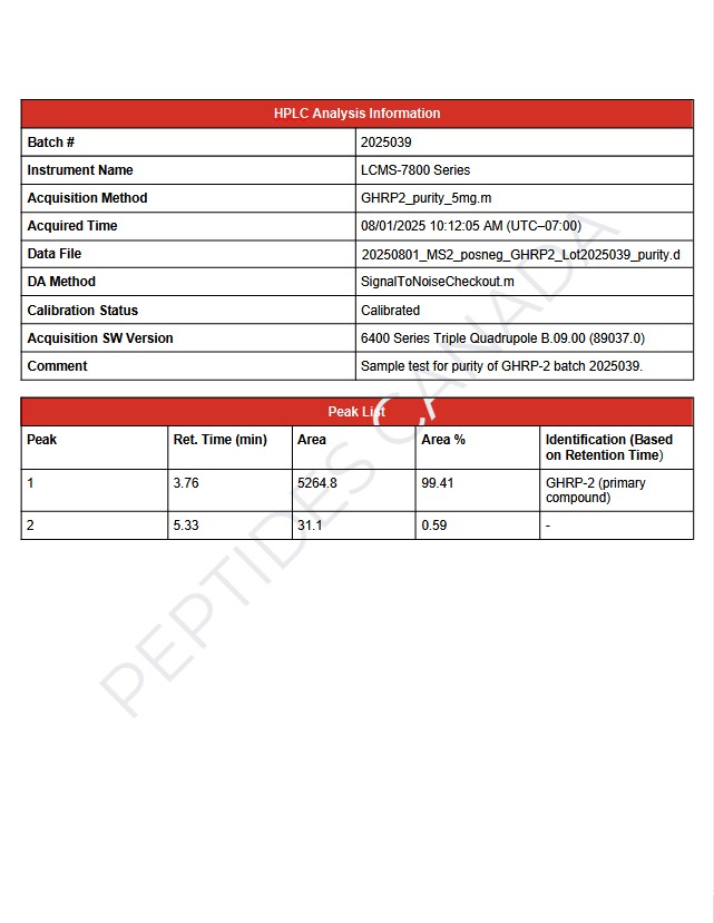 GHRP-2 peptide is available for research and laboratory purposes only. Not for human consumption.