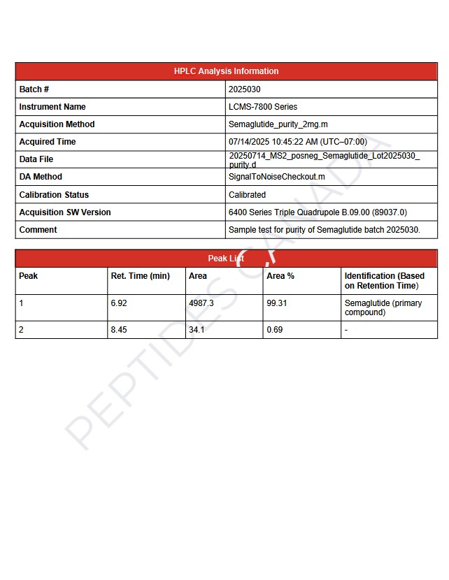 This batch of Semaglutide Peptide has been third-party lab tested and verified for quality. Size: 2mg, 5mg, 10mg, 15mg, 20mg, 30mg